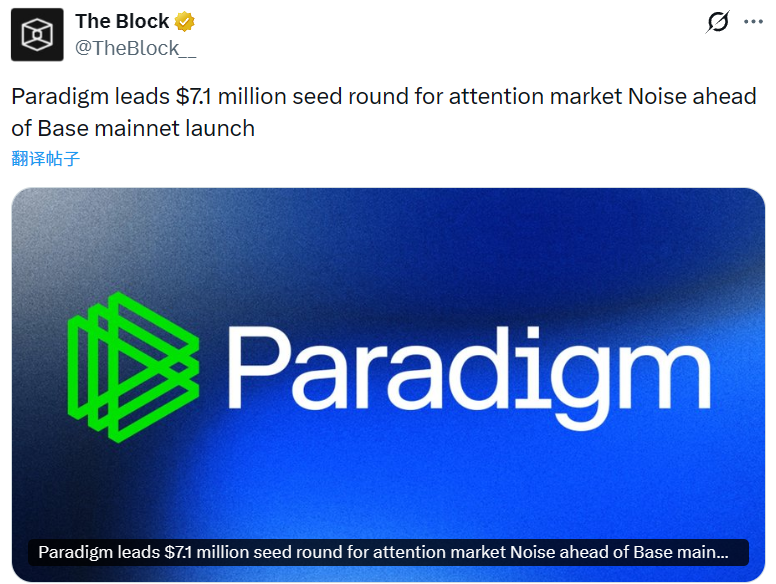 - 预测市场信息平台 Noise 完成 710 万美元种子轮融资,Paradigm 领投