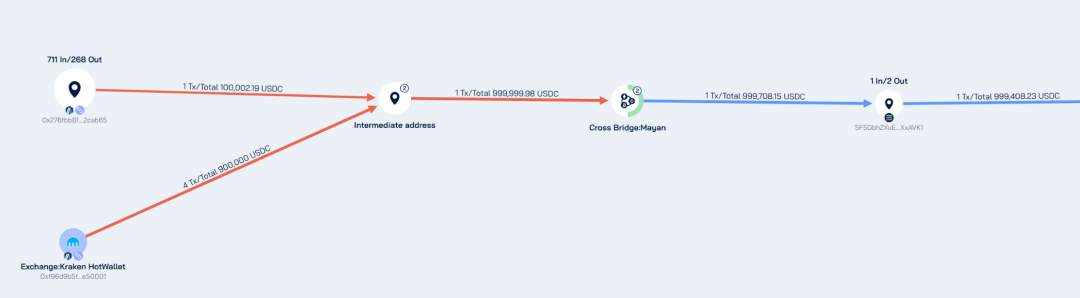 对上述的跨链资金进行进一步的追踪可以发现,该资金来源于 Arbitrum 地址 0xBc985b167C5F3801B19E2Dec7082c2fcbBF07e91,继续往前追溯发现这笔资金 90% 提取自 Kraken,10% 来自一个未知的多链活跃交易地址 0x276fbb81c8a7567ad2412469a549bd4dc82cab65。