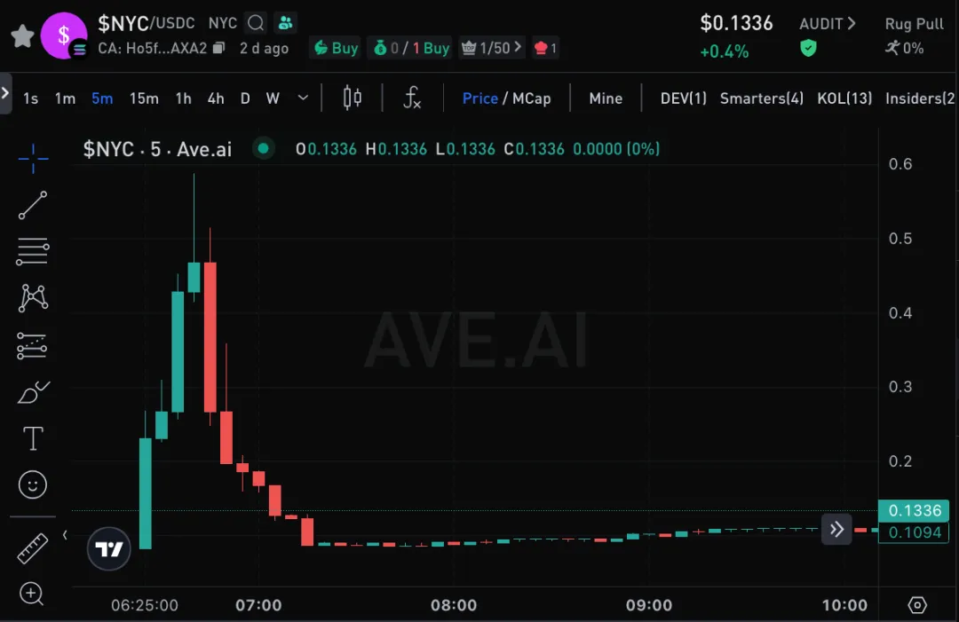 通过 Beosin Trace 的数据统计,目前地址 9Ty4M 已通过地址 FWuiWEdkcR1NLPjozcEuErtGGDZG5kyPu3oszmnF8uni 和地址 H7Lnoh82SZghsXmoqffoCiFz7U3D1cwZ8ZPjRUMU7fc5 分别在 Jupiter 买入 2,301,250 和 1,566,926 枚 NYC 代币,但 NYC 价格仅回到 0.133-0.134,总市值约为 1.3 亿美元。