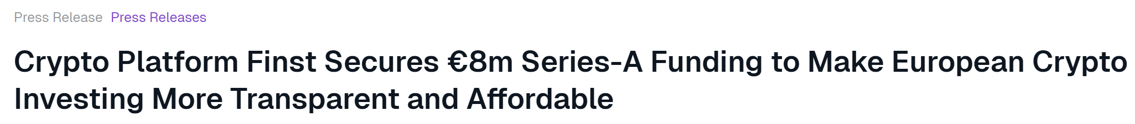 - 荷兰加密货币平台 Finst 完成 800 万欧元 A 轮融资,Endeit Capital 领投