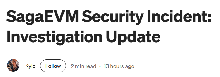 - Saga 发布 SagaEVM 安全事件调查进展更新