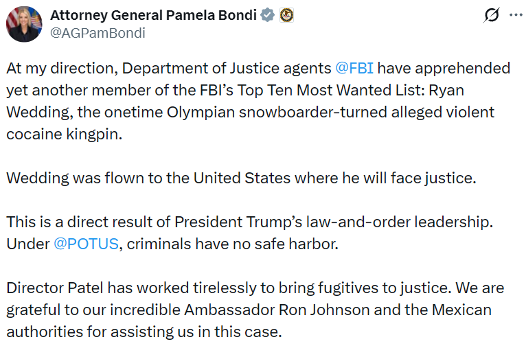 - 美 FBI 逮捕一名涉嫌使用加密货币转移毒品赃款的前奥运滑雪运动员