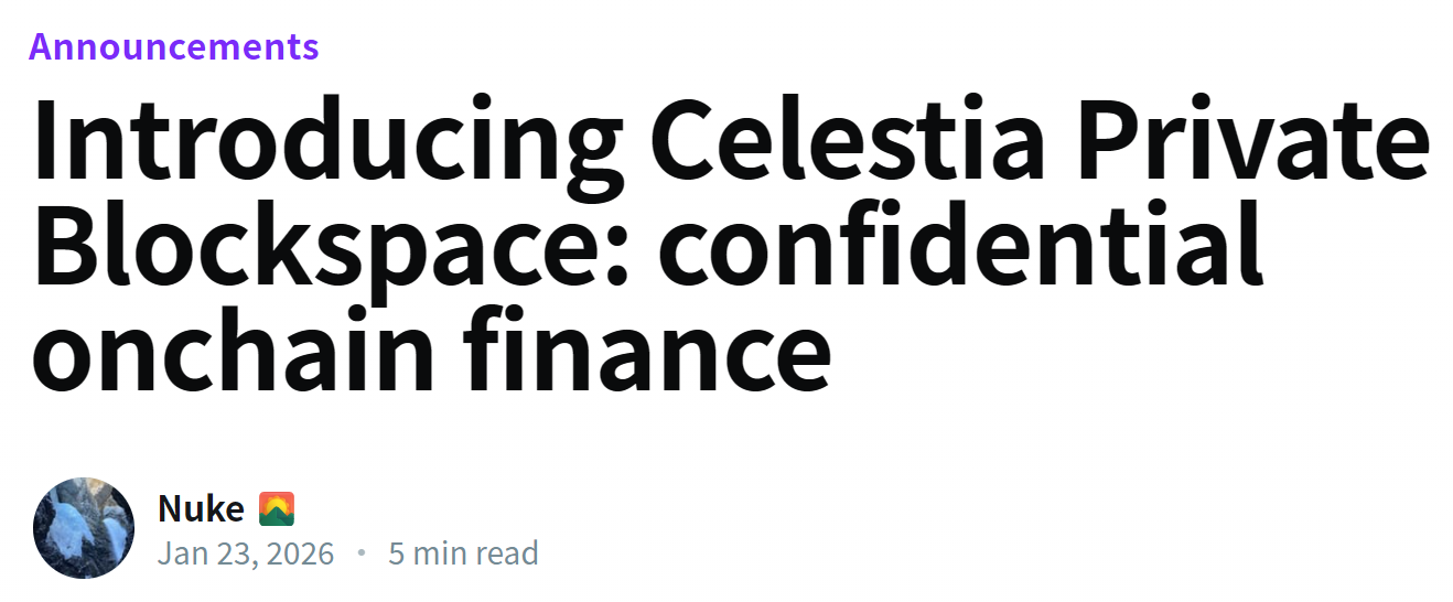 - Celestia 推出隐私保护解决方案 Private Blockspace