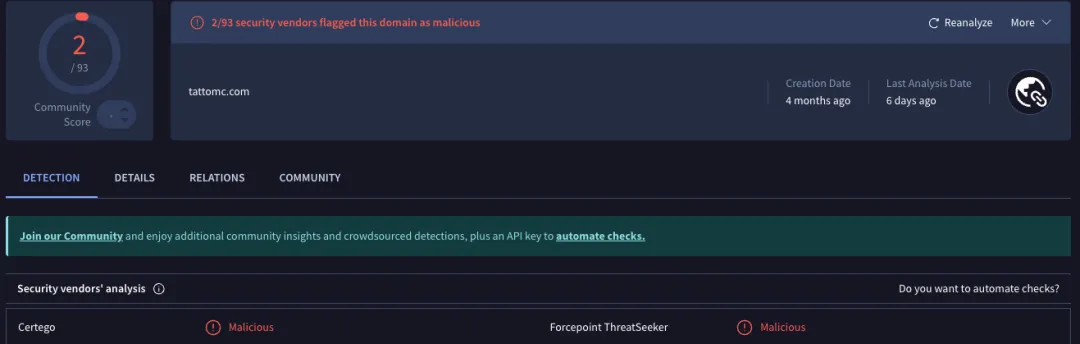 进一步查询发现该 IP 关联到了 tattomc[.]com、stomcs[.]com 等 10 个以上相似恶意域名。