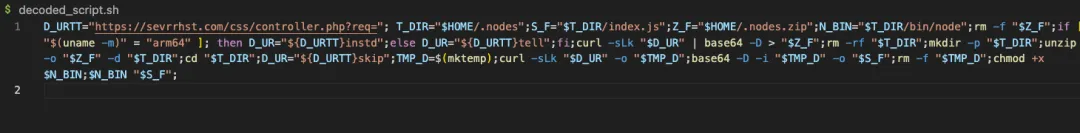 回传服务器:一旦密码验证通过,它会立即通过 curl 将收集到的用户名与密码进行 Base64 编码后回传至服务器 sevrrhst[.]com。