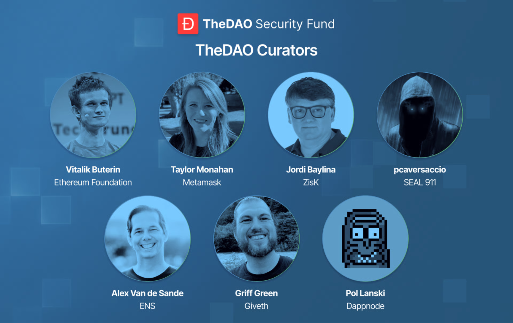 目前,基金已组建专业的监护人团队,为基金运作与资助决策提供专业指导与监督,团队成员均为加密生态的资深从业者与安全专家:包括以太坊创始人 Vitalik、MetaMask 安全工程师 Taylor Monahan、Zisk、Giveth 联合创始人 Jordi Baylina、安全专家 pcaversaccio、ENS 联合创始人 Alex Van de Sande 以及 Dappnode CEO Pol Lanski。