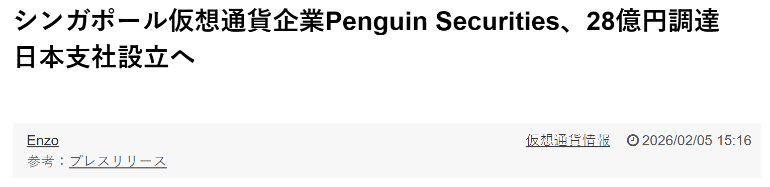 - 新加坡加密公司 Penguin Securities 完成约 1800 万美元融资