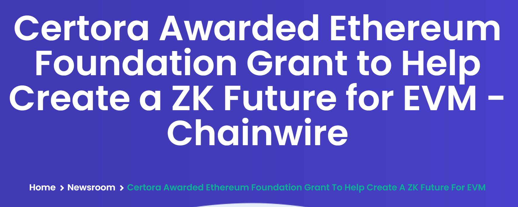 - Web3 安全公司 Certora 获得以太坊基金会资助
