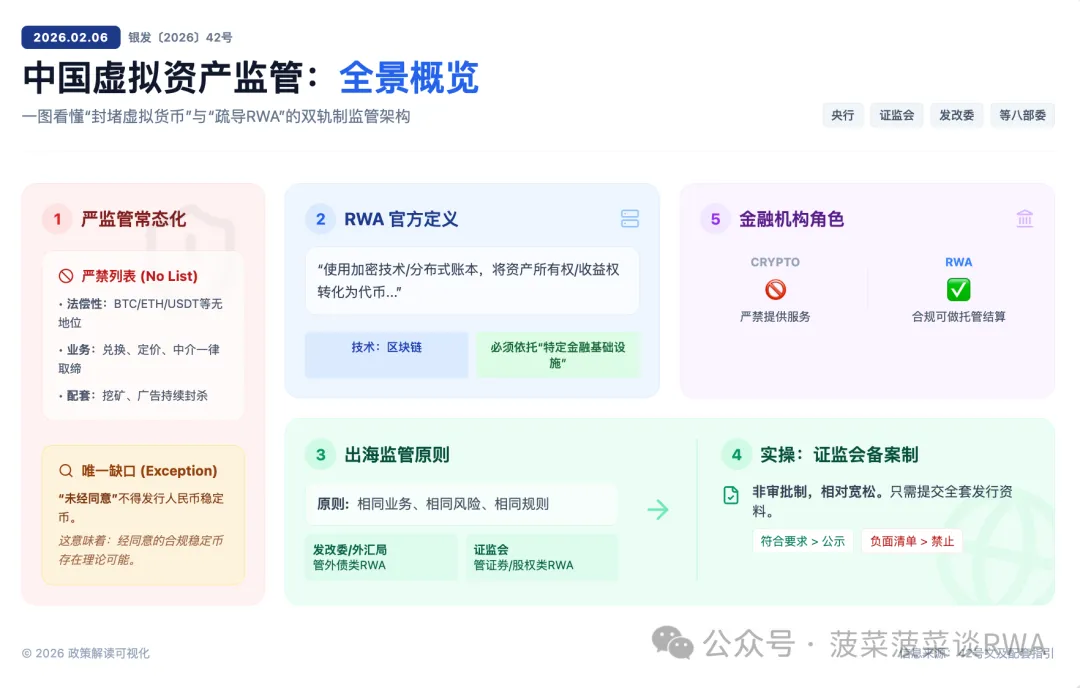 换句话说,42 号文的逻辑不是"禁止 RWA",而是"RWA 必须在我的场子里玩"。