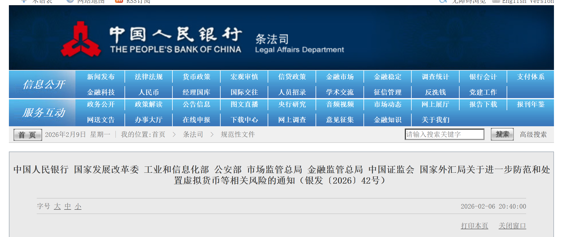 2026 年 2 月 6 日,中国数字资产监管释放重要信号。八部委联合发布虚拟货币风险处置新规,证监会同步推出资产支持证券代币监管指引。整体思路逐渐明确:严控虚拟货币炒作风险,同时探索推动资产代币化(RWA)在严格监管与备案背景下合规出海。