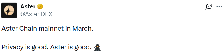 - Aster Chain 主网将于 3 月上线