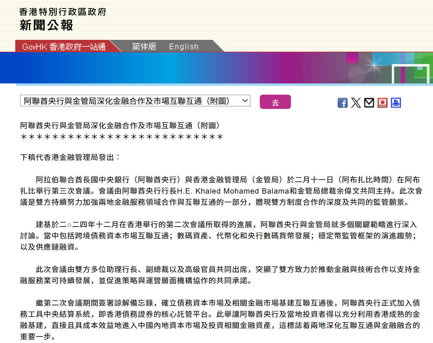 - 阿联酋央行与香港金管局深化金融合作及市场互联互通