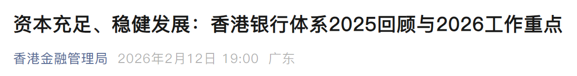 - 香港金管局发布银行体系 2026 年工作重点:支持数字资产行业可持续及负责任发展