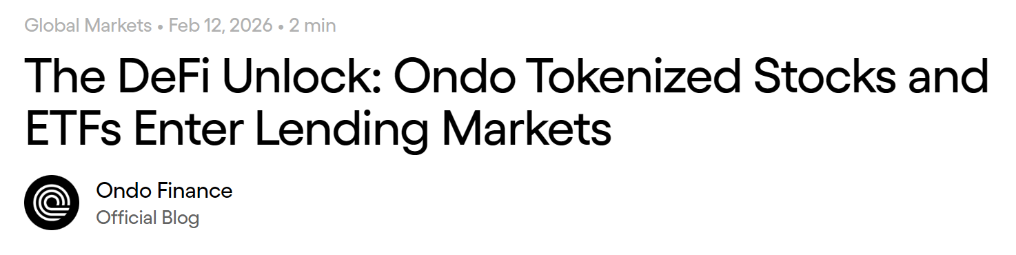 - Ondo 代币化股票在 DeFi 借贷市场上线