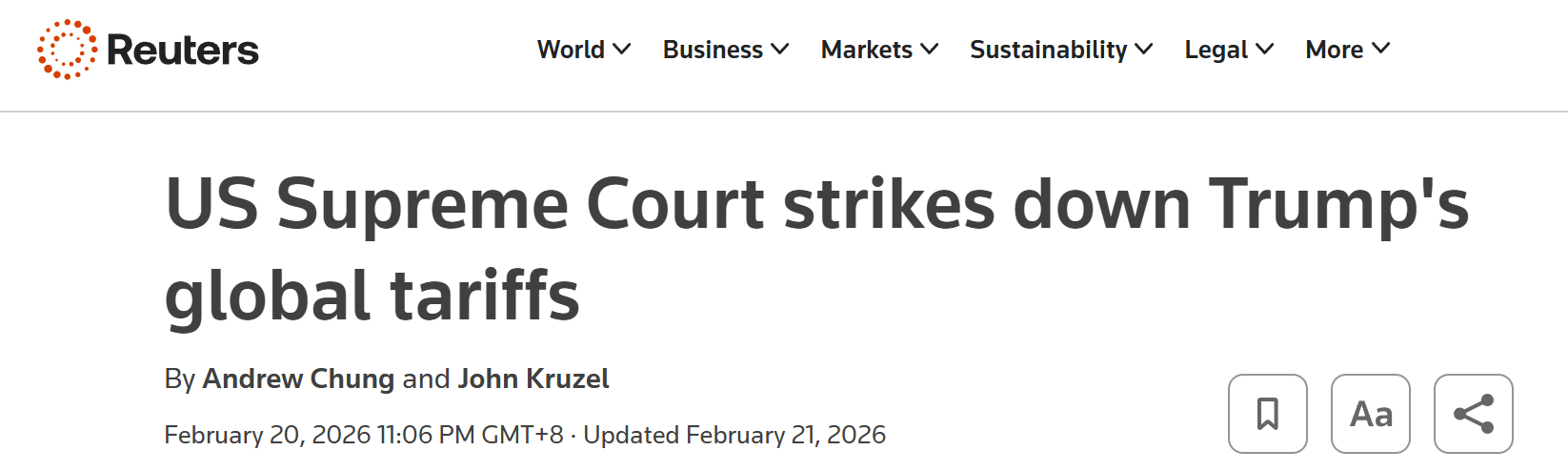 - 美国最高法院驳回特朗普的全球贸易税政策
