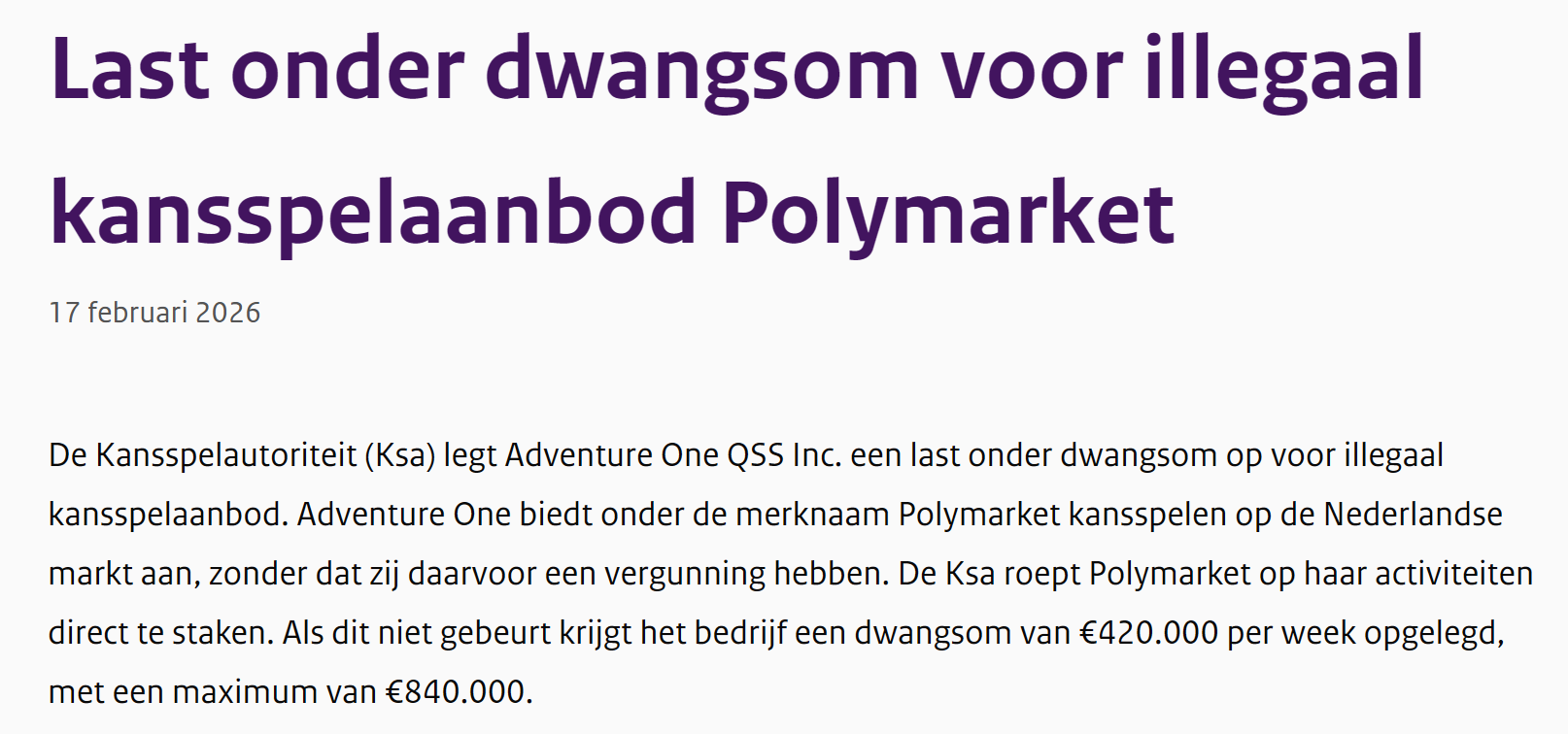 - 荷兰监管机构禁止 Polymarket 在该国运营