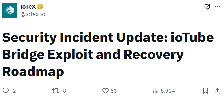 - IoTeX 发布安全事件更新