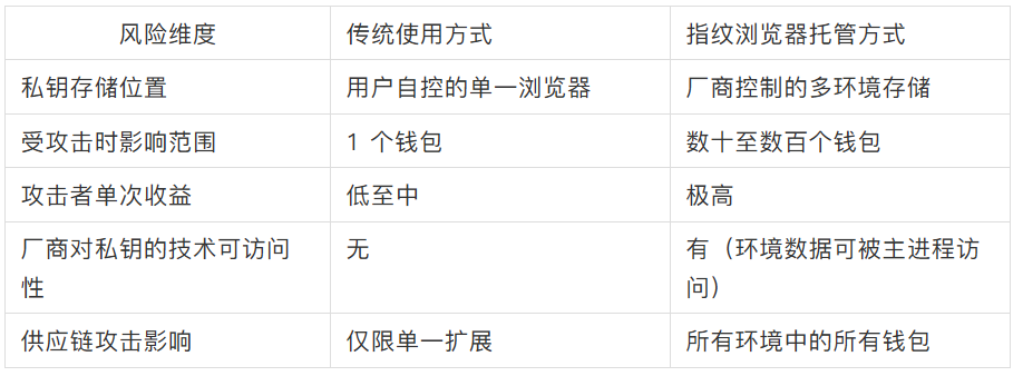 在指纹浏览器中进行链上交互是可以的,但将大量资产的控制权(私钥)长期存放在其中是不明智的。正如你不会把全部存款放在一个没有保险柜的店铺里——即使这家店铺声称自己很安全。