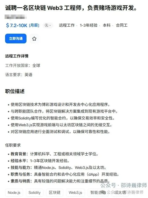 在日常办案和咨询中,邵律师发现,像小王这样有着同样想法的应聘者不在少数:一边被高薪和远程吸引,一边又担心踩到法律红线。那么,程序员转型 Web3,该如何选择工作岗位呢?如何 “避坑” 才能远离法律风险?