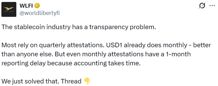 - WLFI 发布 USD1 实时链上储备金证明页面