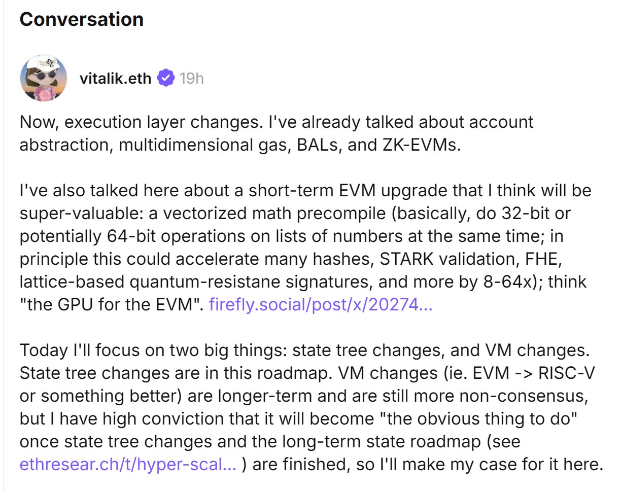 - Vitalik:状态树将转向二进制树结构,EVM 拟逐步替换为 RISC-V 架构