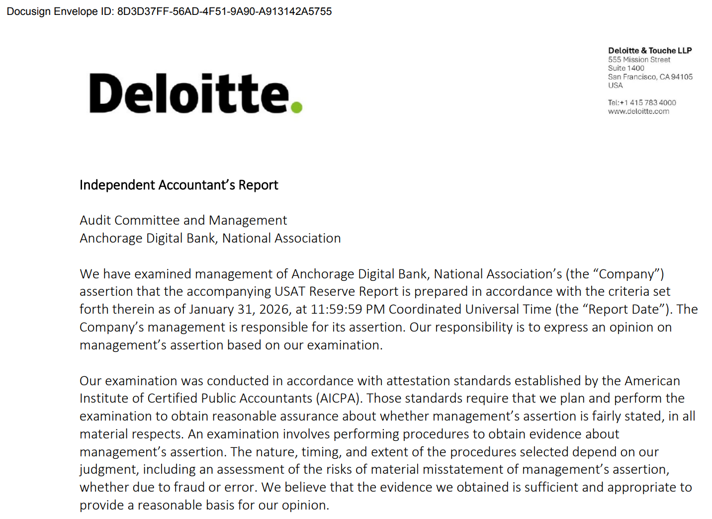 - Tether 旗下 USAT 获德勤出具储备证明,规模 1760 万美元