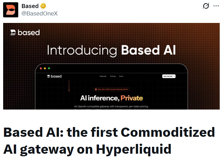 - Based 推出基于 Hyperliquid 的商品化 AI 网关