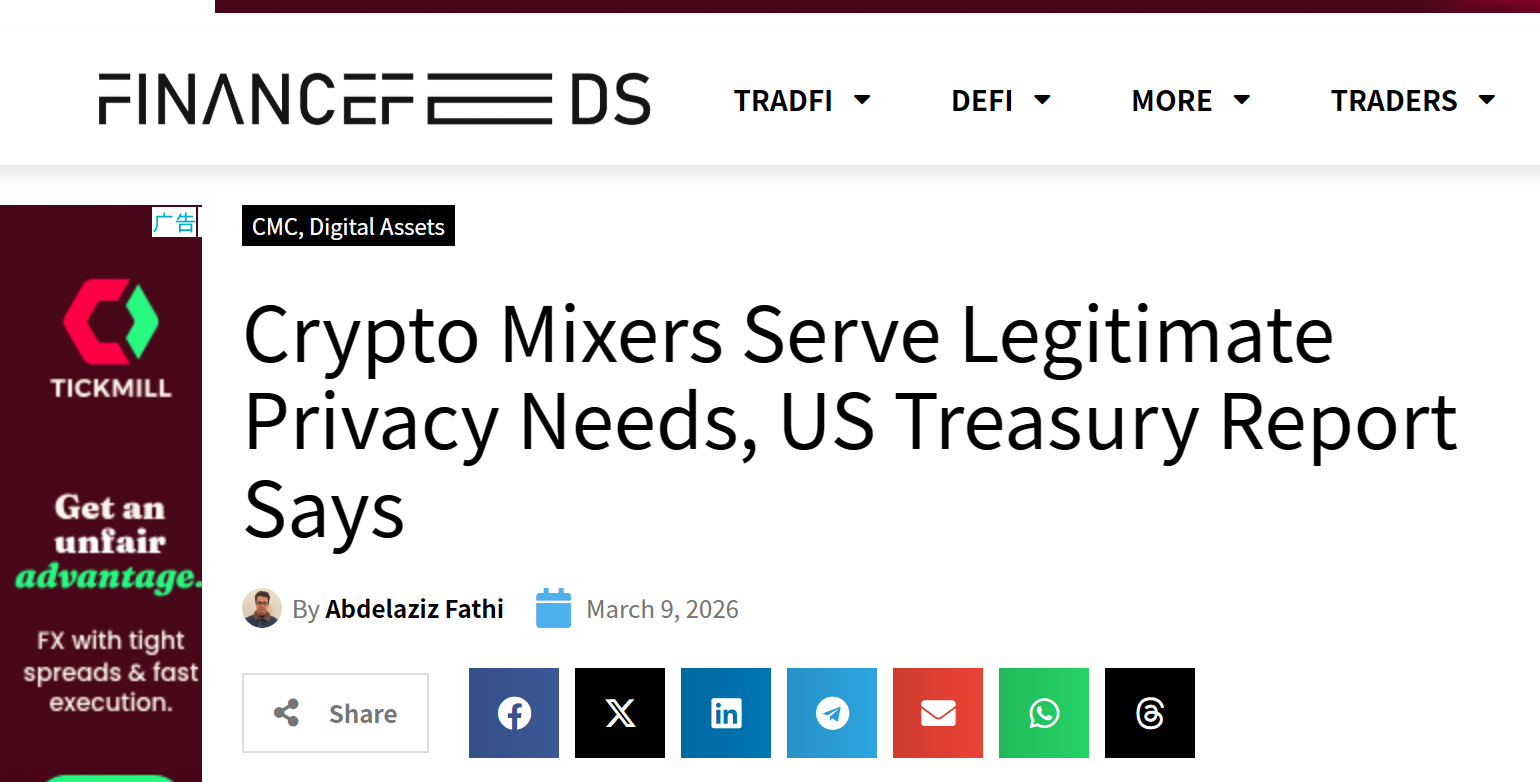 - 美国财政部:加密混币器可服务于合法隐私需求,敦促国会制定加密资产专项「冻结法」