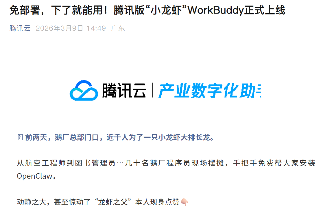 - 腾讯上线旗下全场景 AI 智能体 WorkBuddy