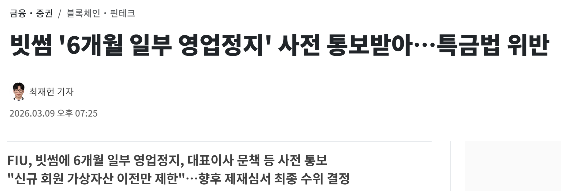 - 韩国 FIU 拟因违反特金法对 Bithumb 处以 6 个月部分停业处罚