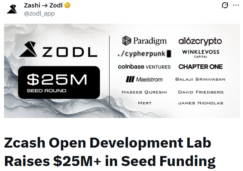 - Zcash 开放开发实验室 ZODL 完成逾 2500 万美元种子轮融资
