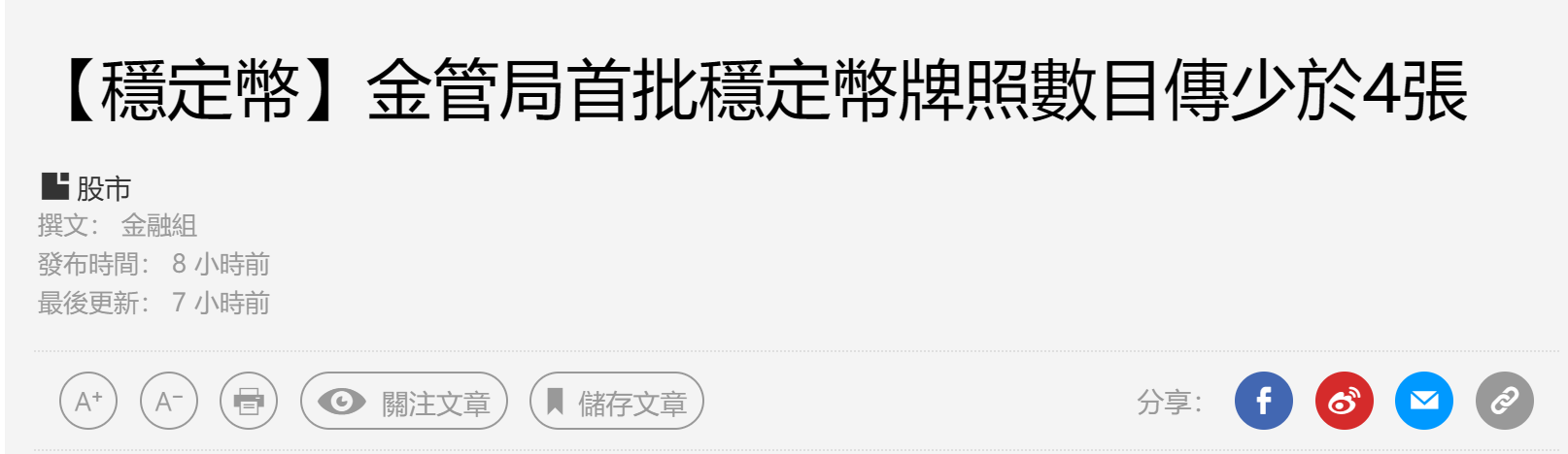 - 香港金管局稳定币牌照或于两会后出台
