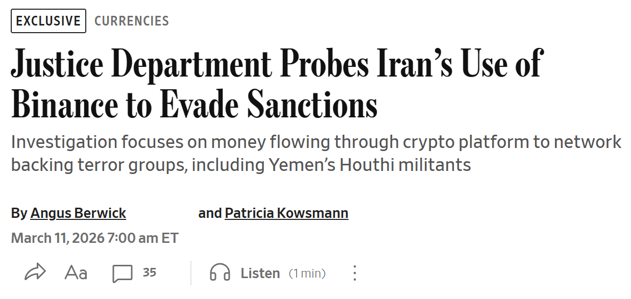 - 美国司法部正在调查伊朗利用币安规避美国制裁一事