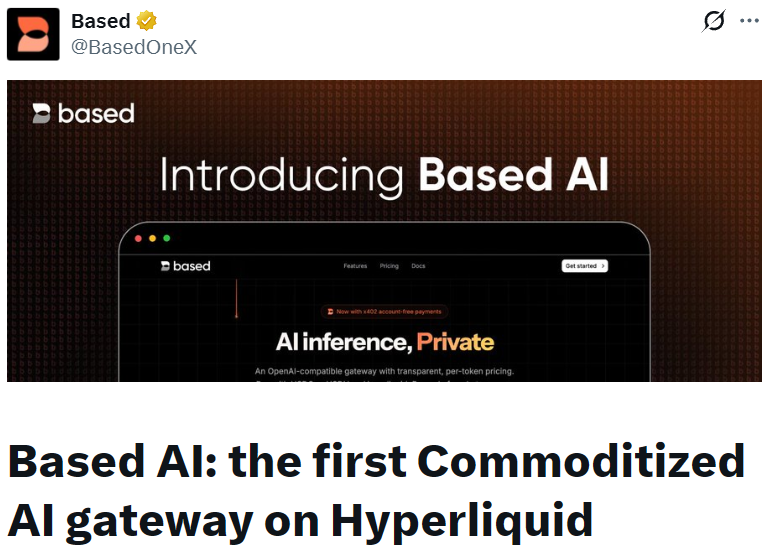 - Based 推出基于 Hyperliquid 的商品化 AI 网关