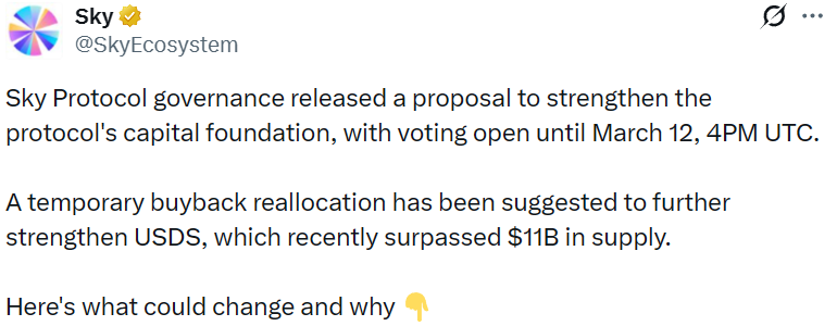- Sky Protocol 治理方发布新提案