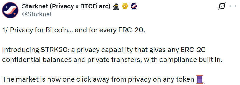 - Starknet 推出 STRK20
