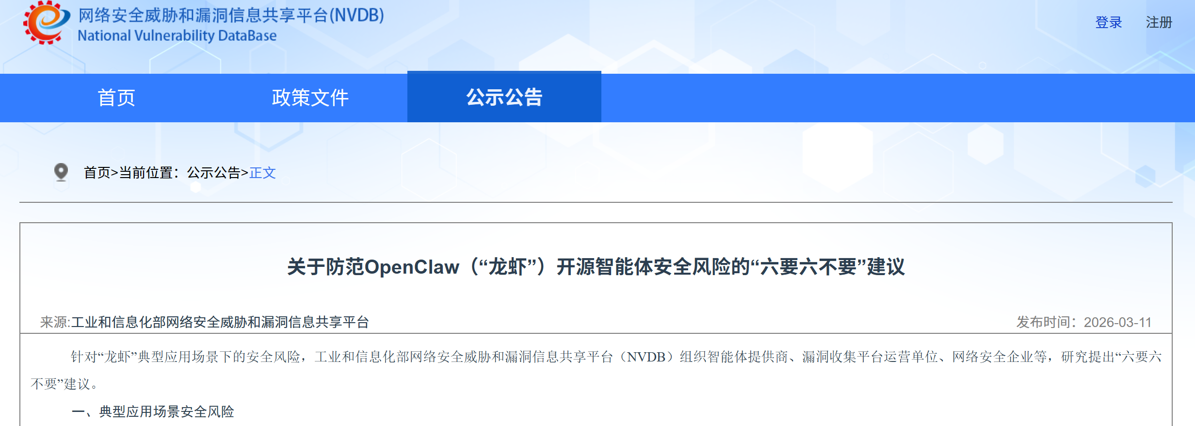- 工信部发布关于防范 OpenClaw 安全风险的「六要六不要」建议