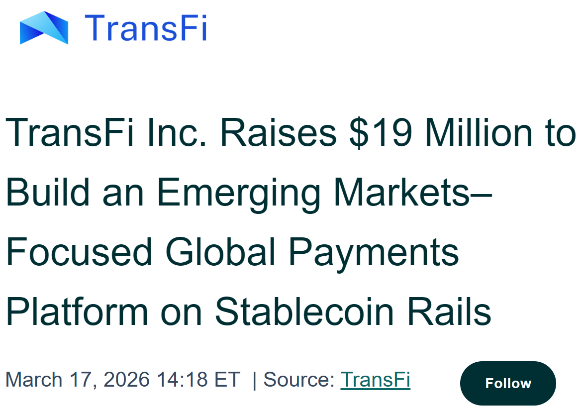 - 稳定币支付初创公司 TransFi 完成 1920 万美元融资,Turing Financial Group 领投