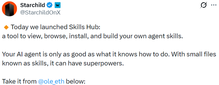 - AI Agent 平台 Starchild 上线 Skills Hub