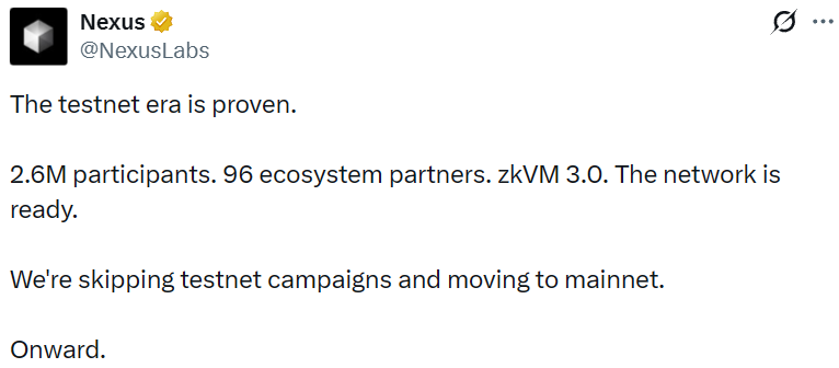 - Nexus 将于 3 月 17 日关闭测试网