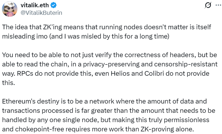- Vitalik:ZK 技术无法替代节点的重要性