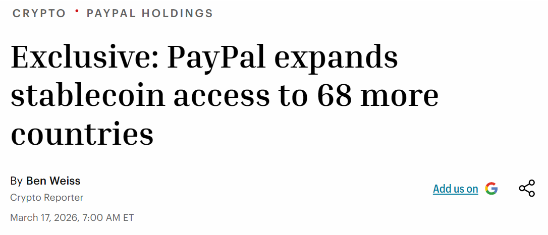 - PayPal 将其 PYUSD 稳定币服务扩展至 70 个国家