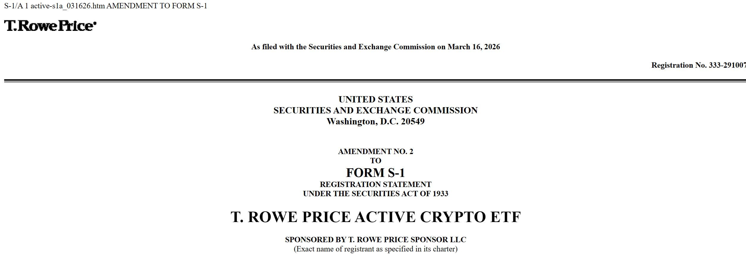 - T. Rowe Price 提交加密 ETF 修正案