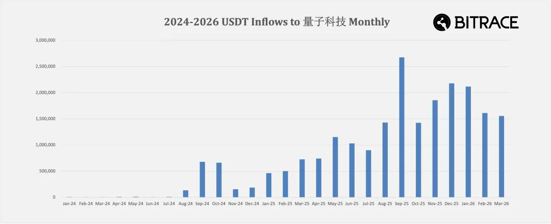 而在将软件开发、博彩机器人定制、非法加密货币兑换等业务地址纳入统计后,可见该服务商的业务规模正逐月提升,在 2024 年 1 月至 2026 年 3 月间至少收取了 2200 万 USDT。