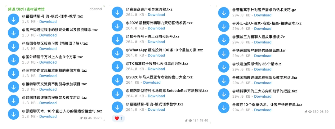 除了社交媒体素材之外,这类社群还会提供日常聊天的话术文案以及诱导受害人参与「投资」的剧本。如上图,某个社群提供了大量的话术教程,包括但不限于如何与特定国家的受害人谈恋爱,各国家的主要投资方式是怎样的,如何不突兀地将受害人引入骗局等等。