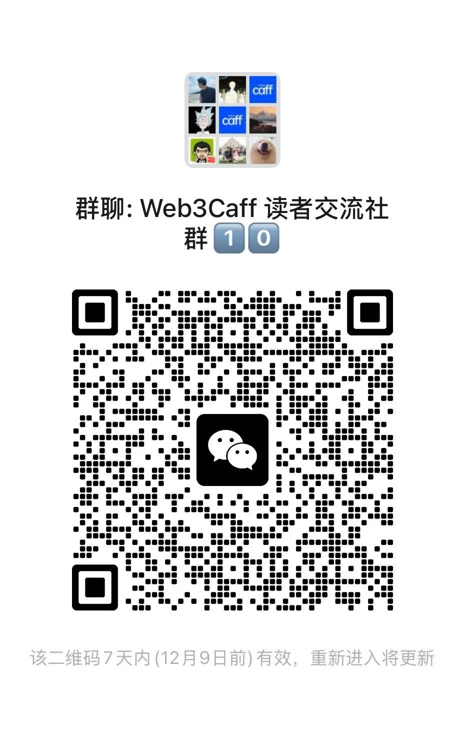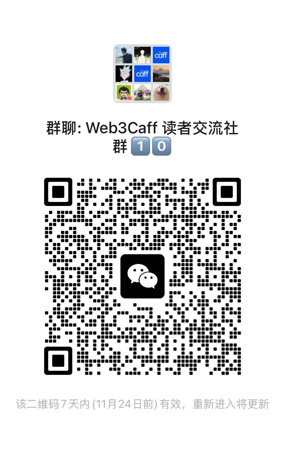 欢迎加入微信读者社群,可使用微信扫码二维码或保存下方二维码图片通过微信扫一扫-> 选择相册二维码识别以加入;或者添加微信小助手(ID:web3caff01)拉您入群。