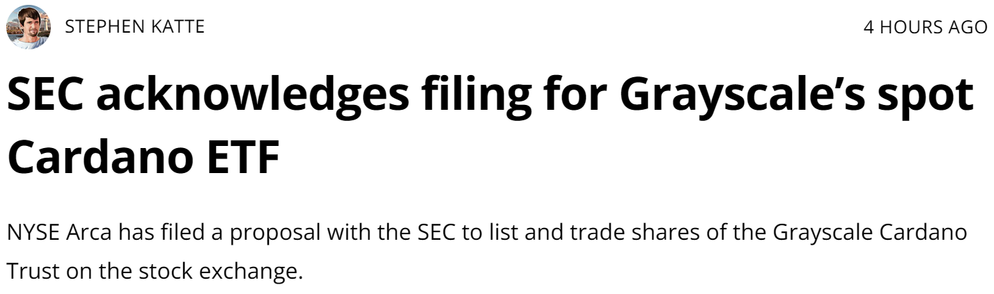 - SEC 受理 Grayscale 提交的 Cardano 现货 ETF 申请