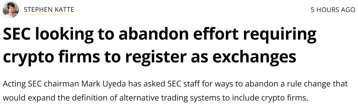 - SEC 或将放弃要求加密企业注册为交易所的提案