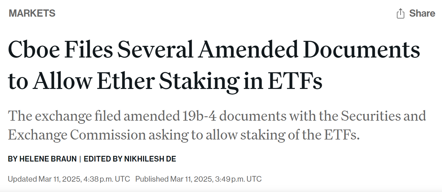- CBOE 提交申请以允许富兰克林以太坊 ETF 进行质押