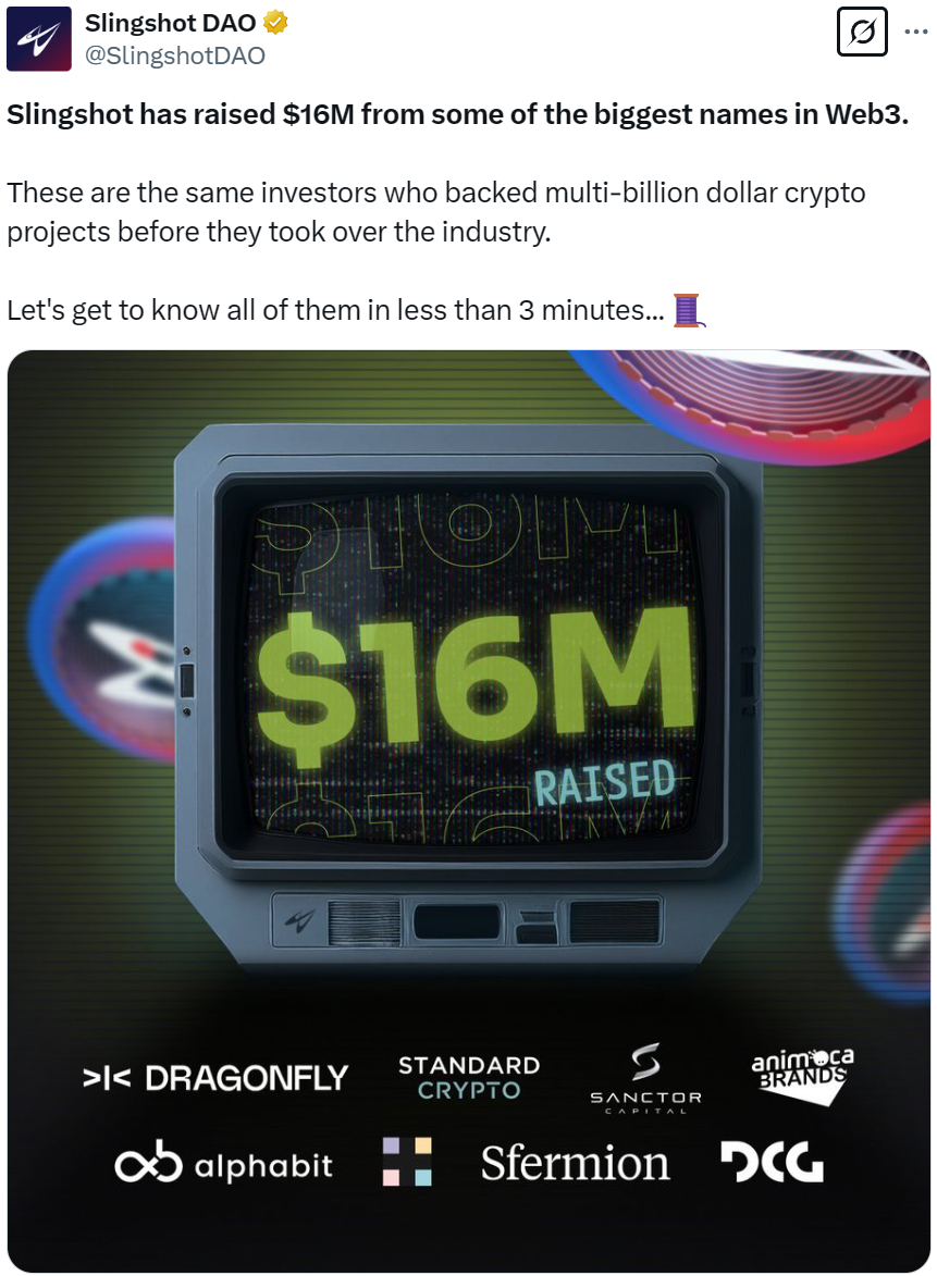 - Web3 游戏生态 SlingShot DAO 完成 1600 万美元融资,Dragonfly 等参投